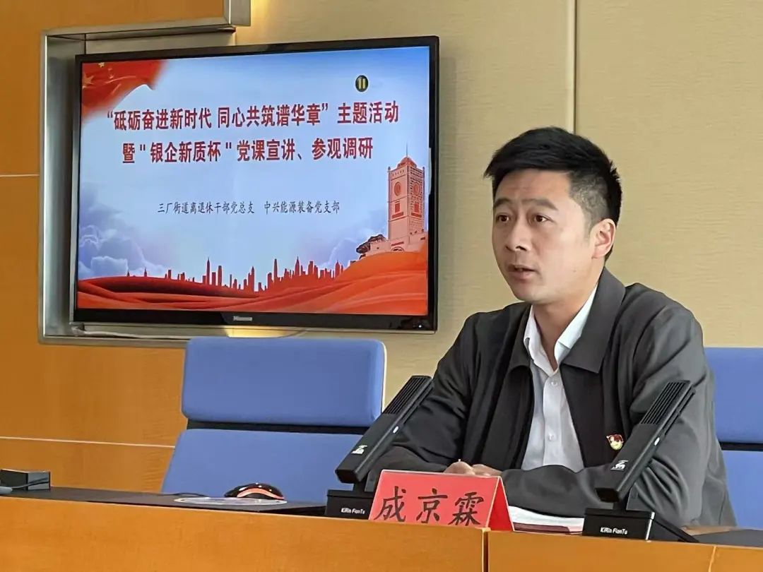 爲深入學習貫徹黨的二十屆三中全會精神,慶祝中華人民共和國成立75周年,進一步提高離退休幹部和“兩新”組織黨員黨性修養,激發愛(ài)國熱情,10月20日,三廠街道離退休幹部黨總支、中興能源裝備(bèi)有限公司黨支部聯合開展“砥砺奮進新時代 同心共築譜華章”主題黨日活動暨“銀企新質杯”黨課宣講。